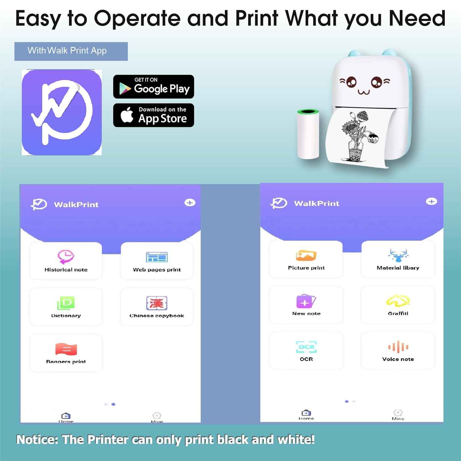 🤓👌User-Friendly: Easy-to-use phone app (Walkprint) with simple interface. Quick setup and intuitive controls